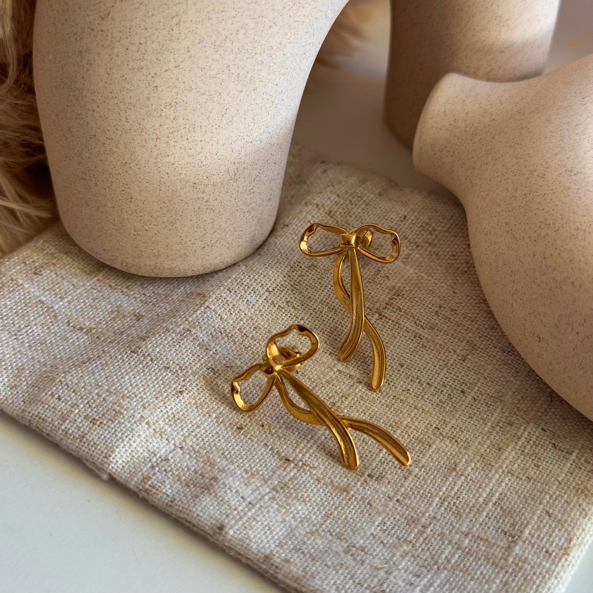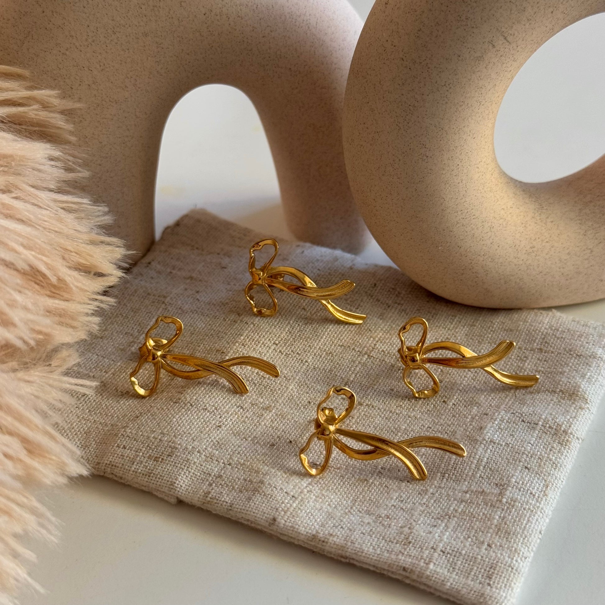 Elevate your style with this exquisite classic ribbon earrings. Made with 18k gold plated crafted for timeless elegance. Waterproof, non-tarnish, and hypoallergenic, it boasts enduring brilliance and exceptional comfort, making it the perfect statement of luxury and sophistication.