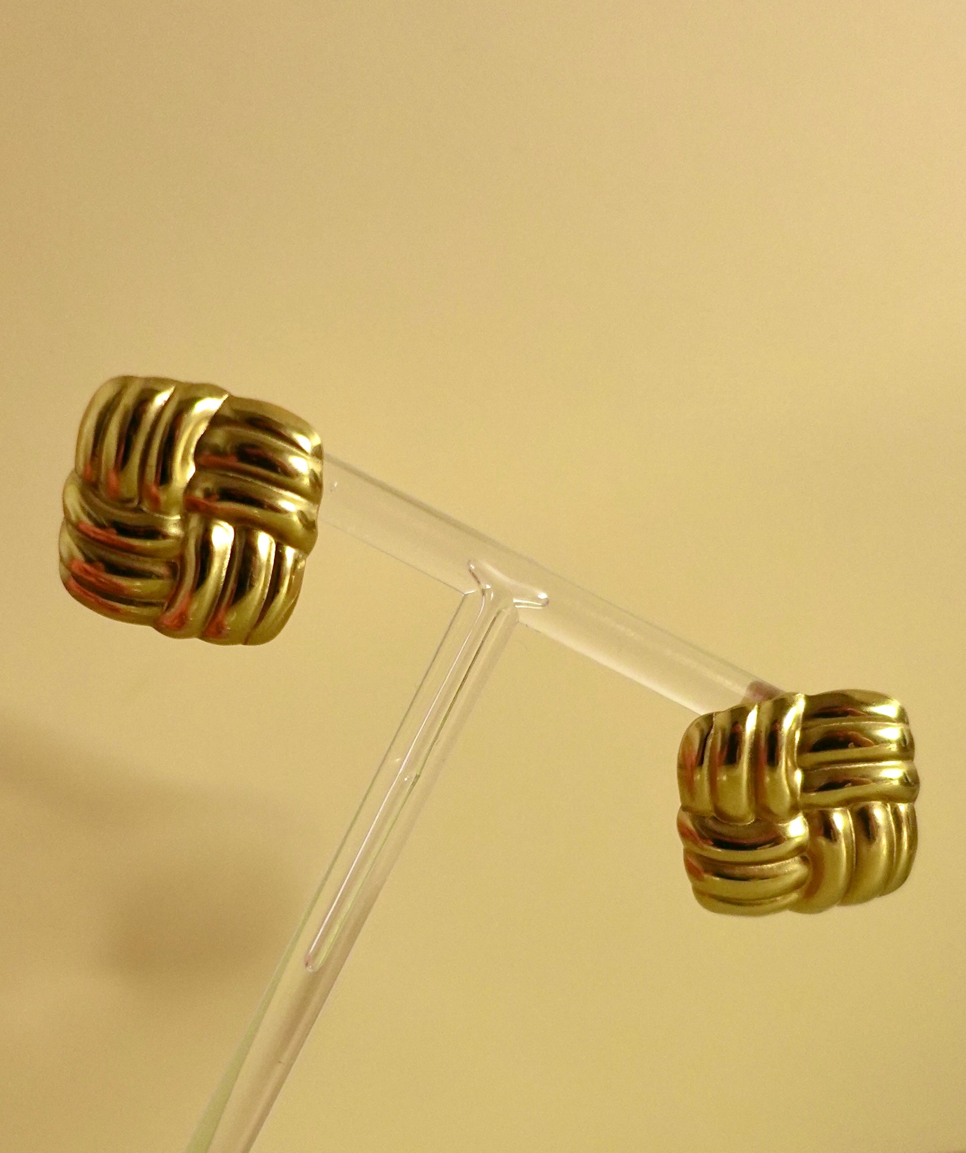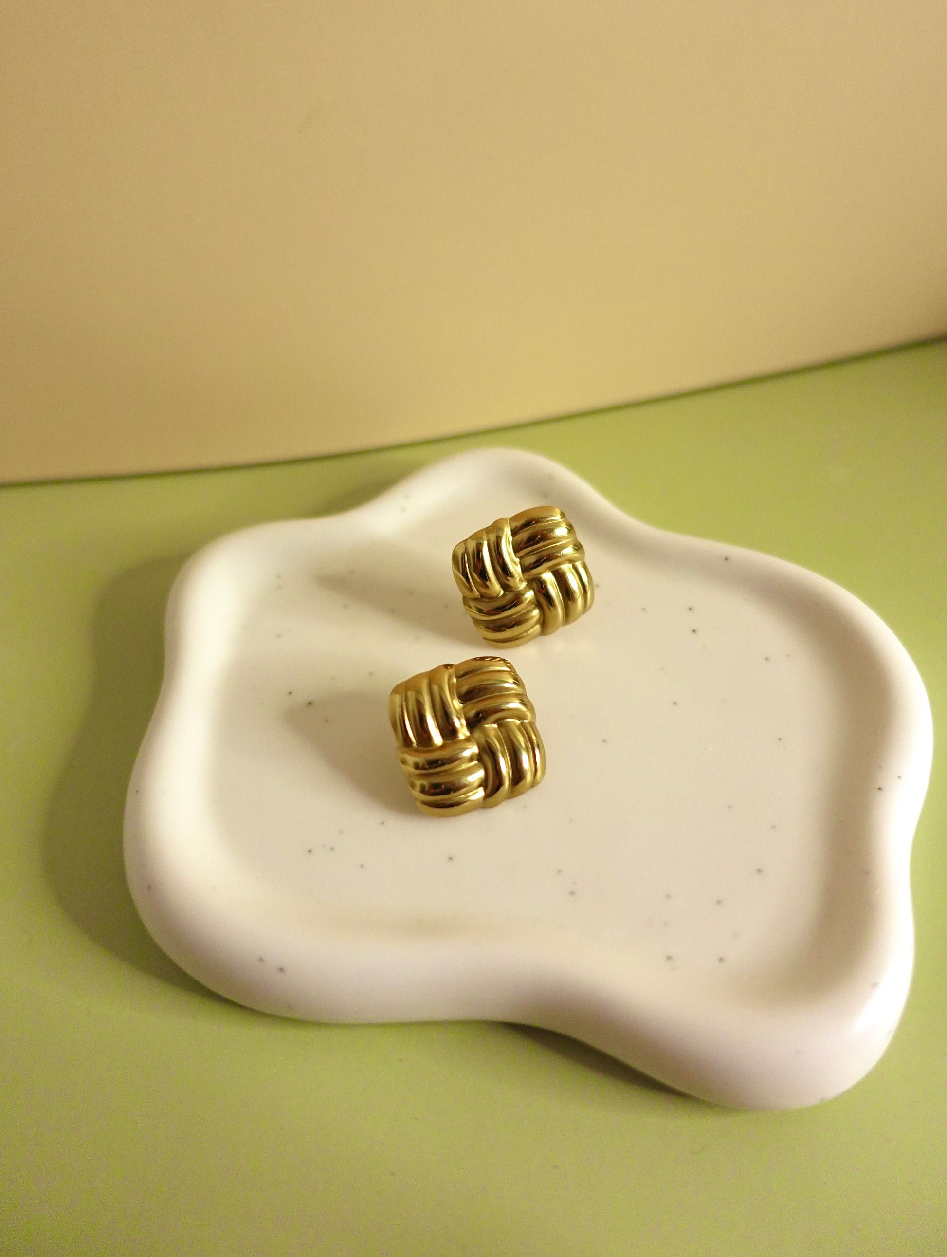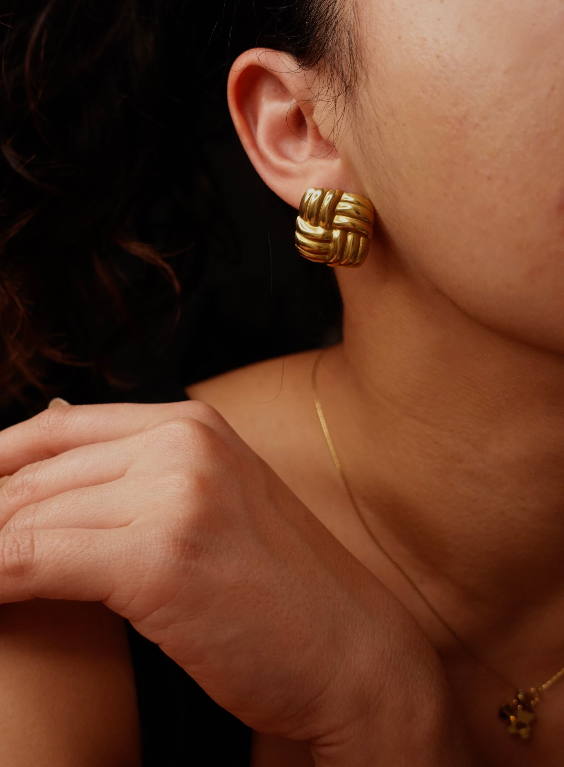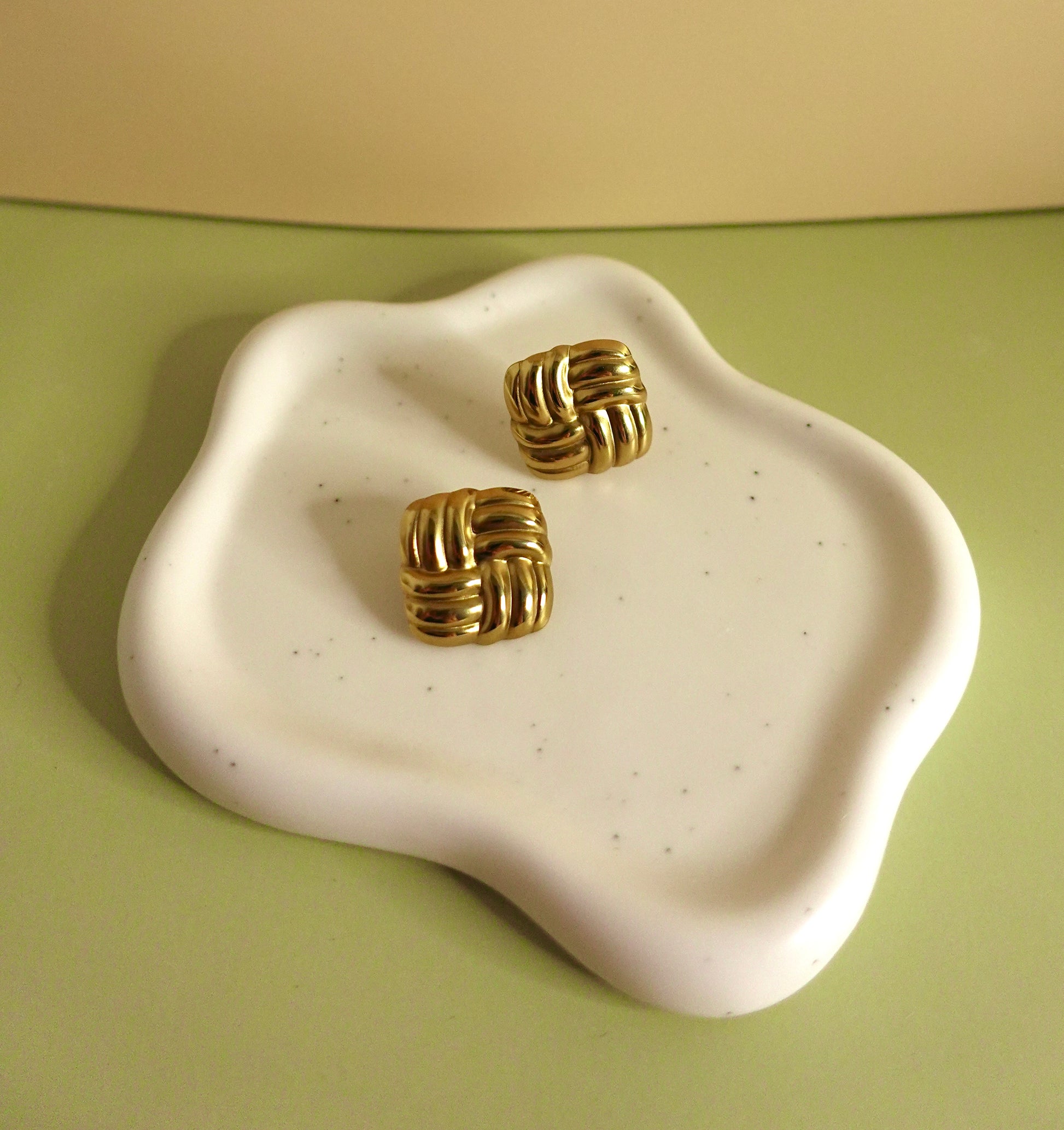 Sleek, sculpted, and endlessly refined—these square stud earrings are the definition of modern glamour. Dipped in rich 18k gold, their clean lines and geometric edge bring a quiet boldness to any look.