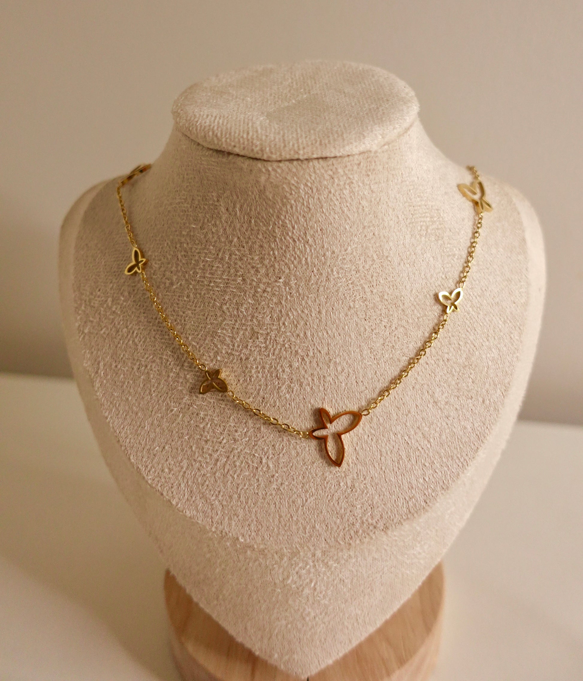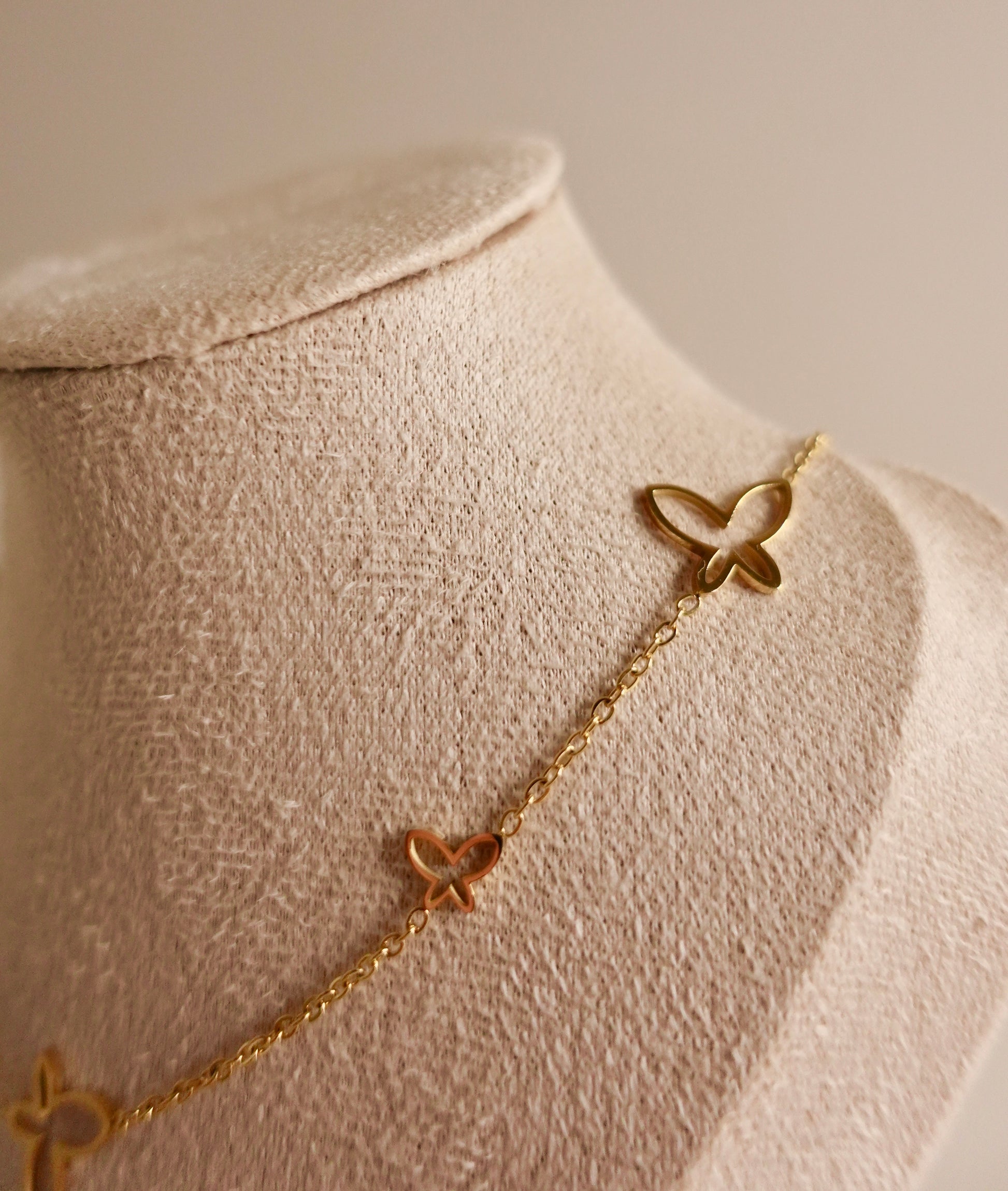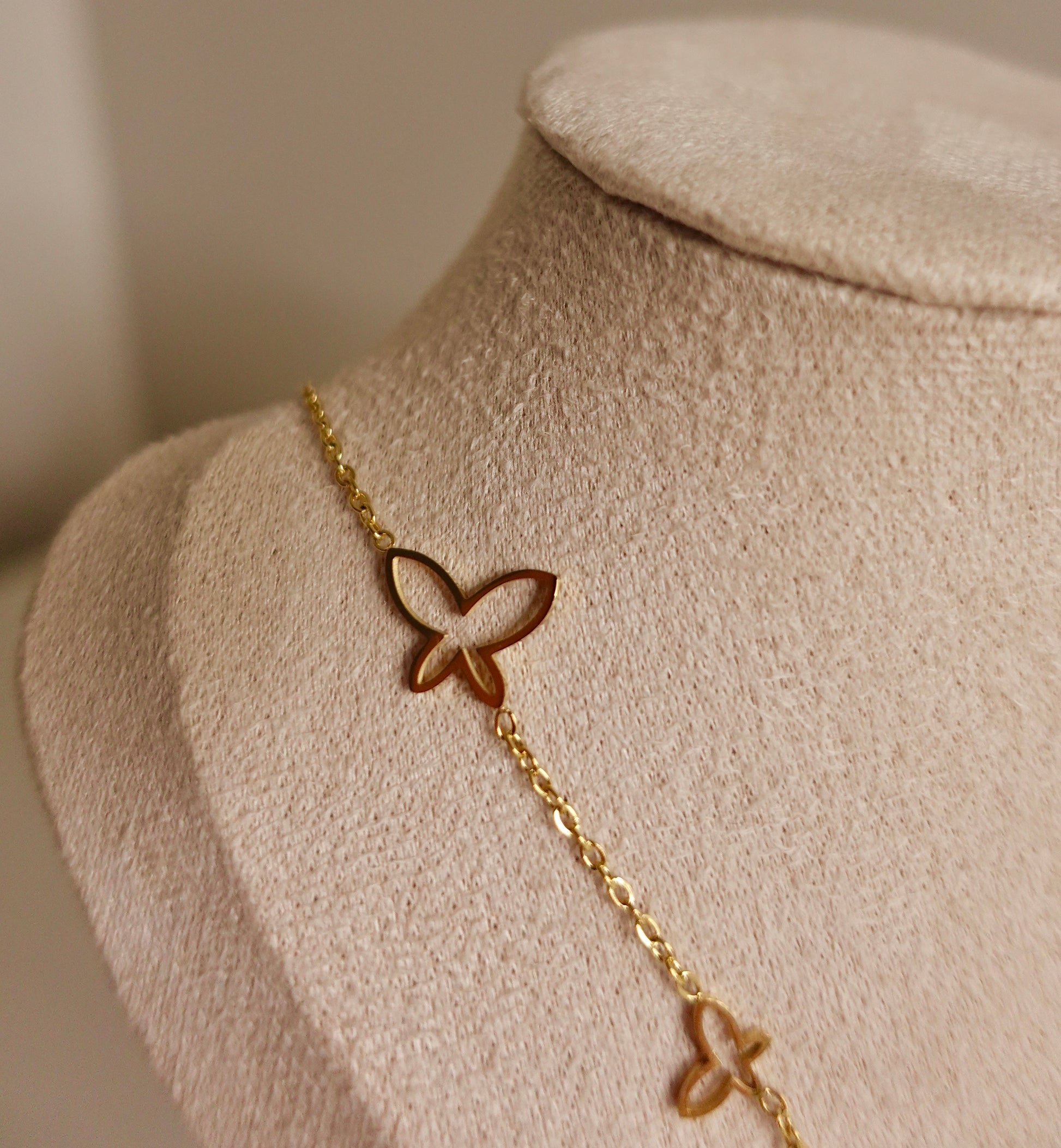 Golden wings of elegance — This butterfly necklace in gleaming gold is a symbol of freedom, grace, and timeless beauty. Light as air, yet bold in design, it adds a touch of whimsy and luxury to any look. Perfect for those who embrace transformation and elegance in every flutter.