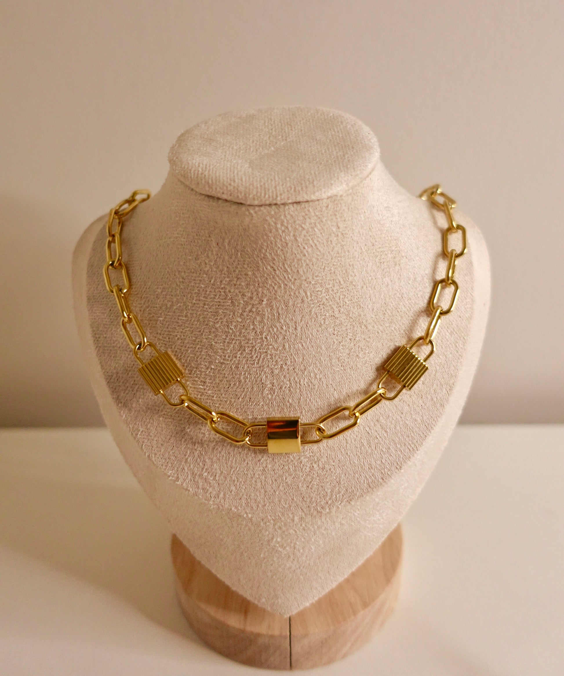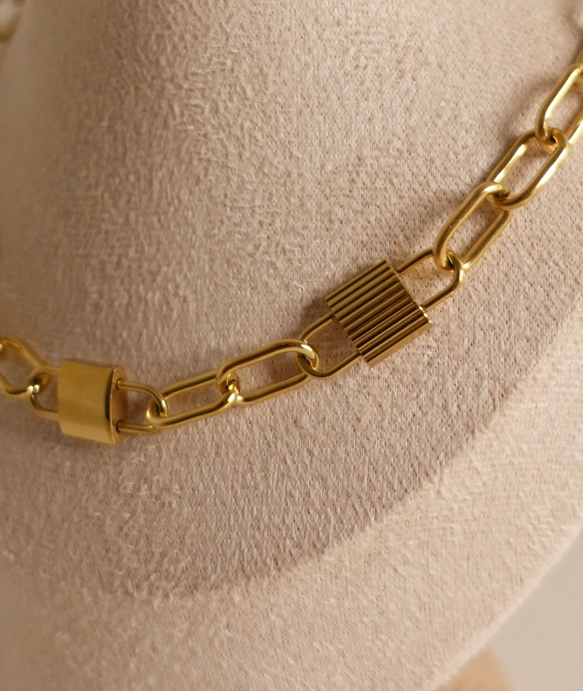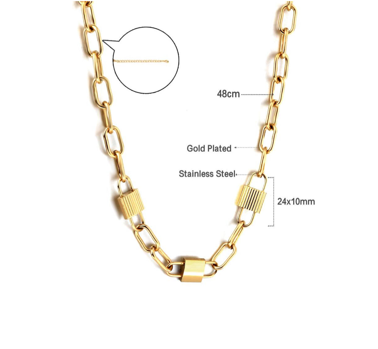 This sleek lock pendant necklace brings a cool edge to luxury — bold, minimal, and effortlessly chic. It’s the kind of statement that says power, confidence, and just the right amount of mystery. A modern classic made to turn heads and hold attention.