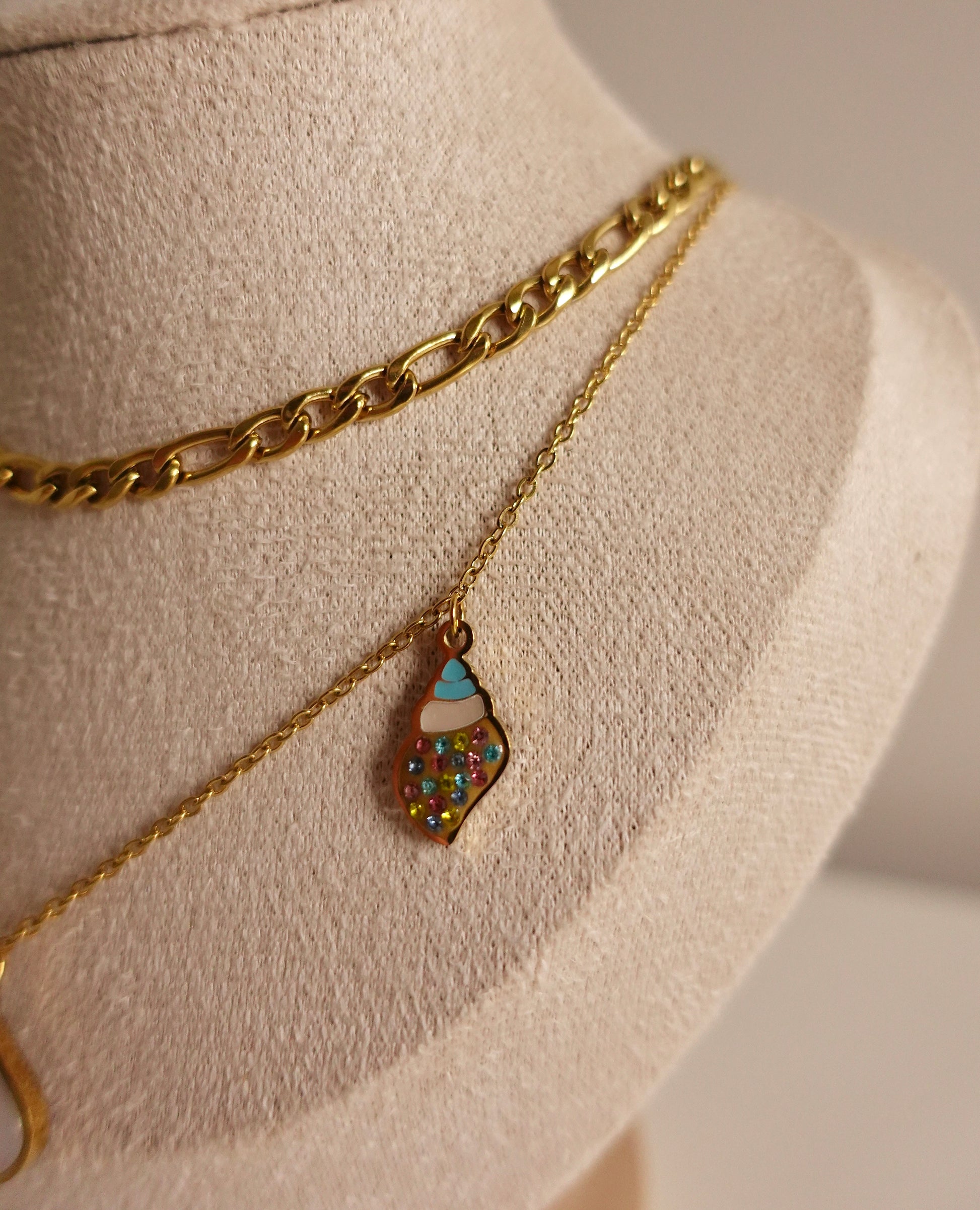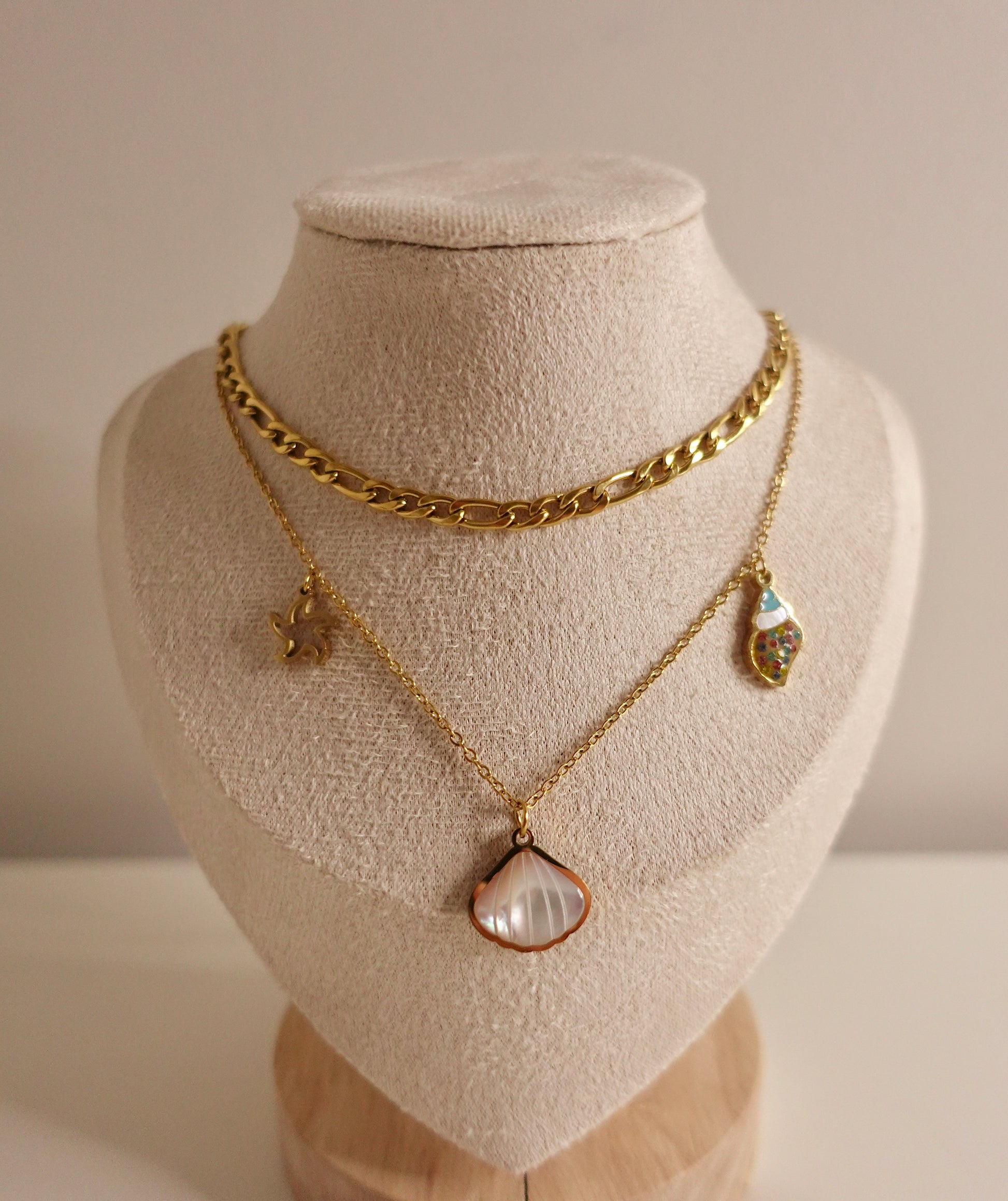 This playful necklace, with an ice cream charm and a shell charm, brings together a burst of fun and luxury. A delightful mix of summer vibes and elegant charm, it’s the perfect way to add a little whimsy and a lot of sparkle to your style.