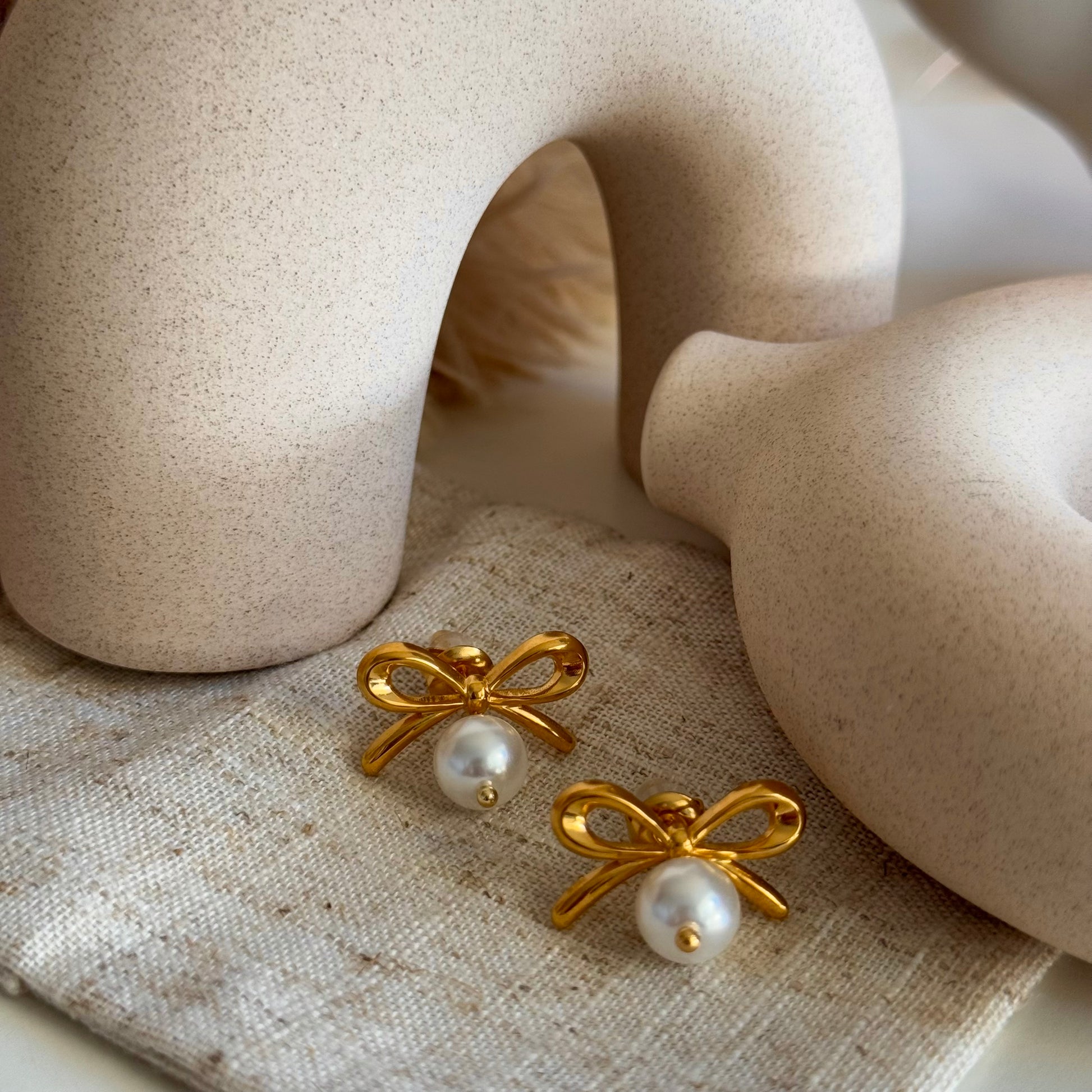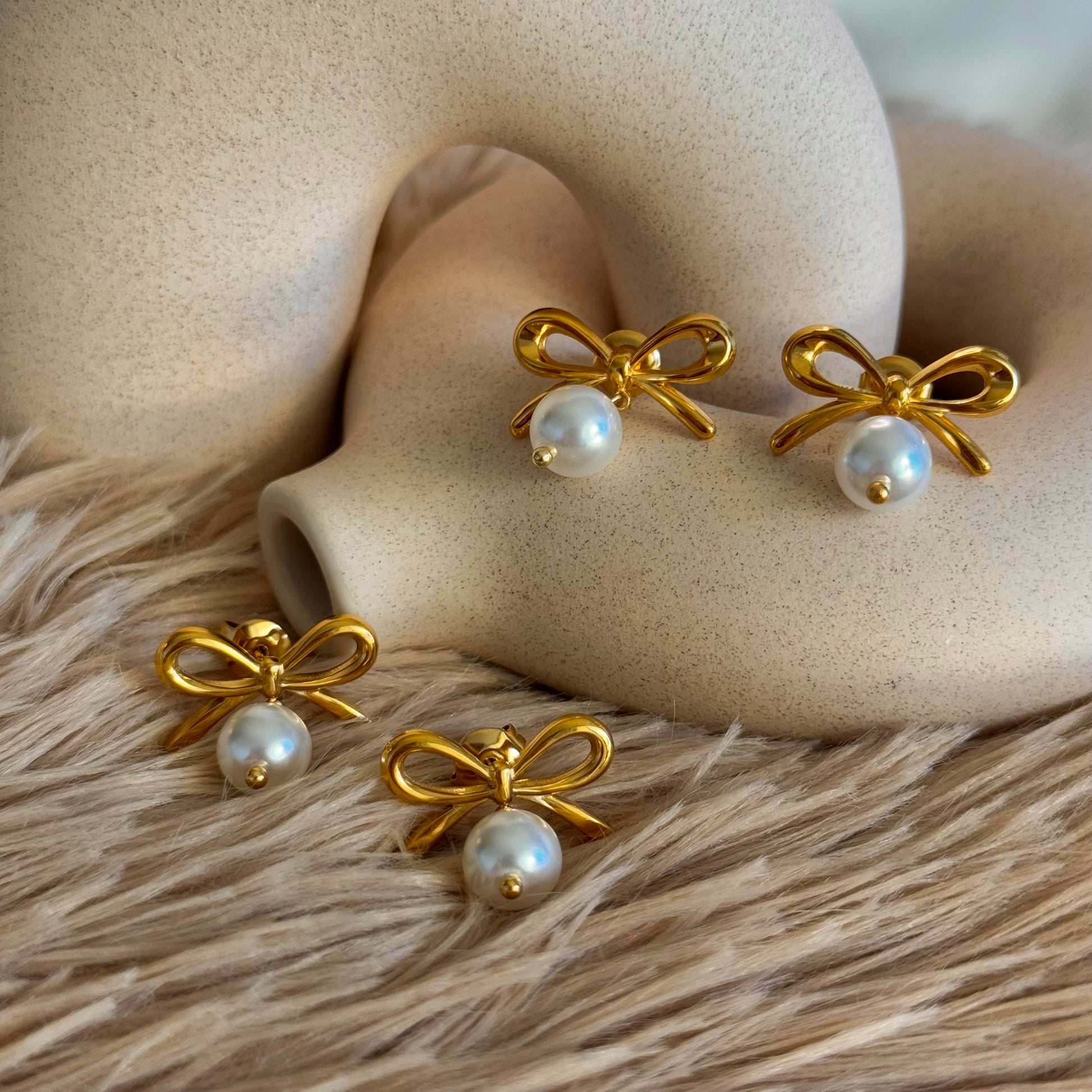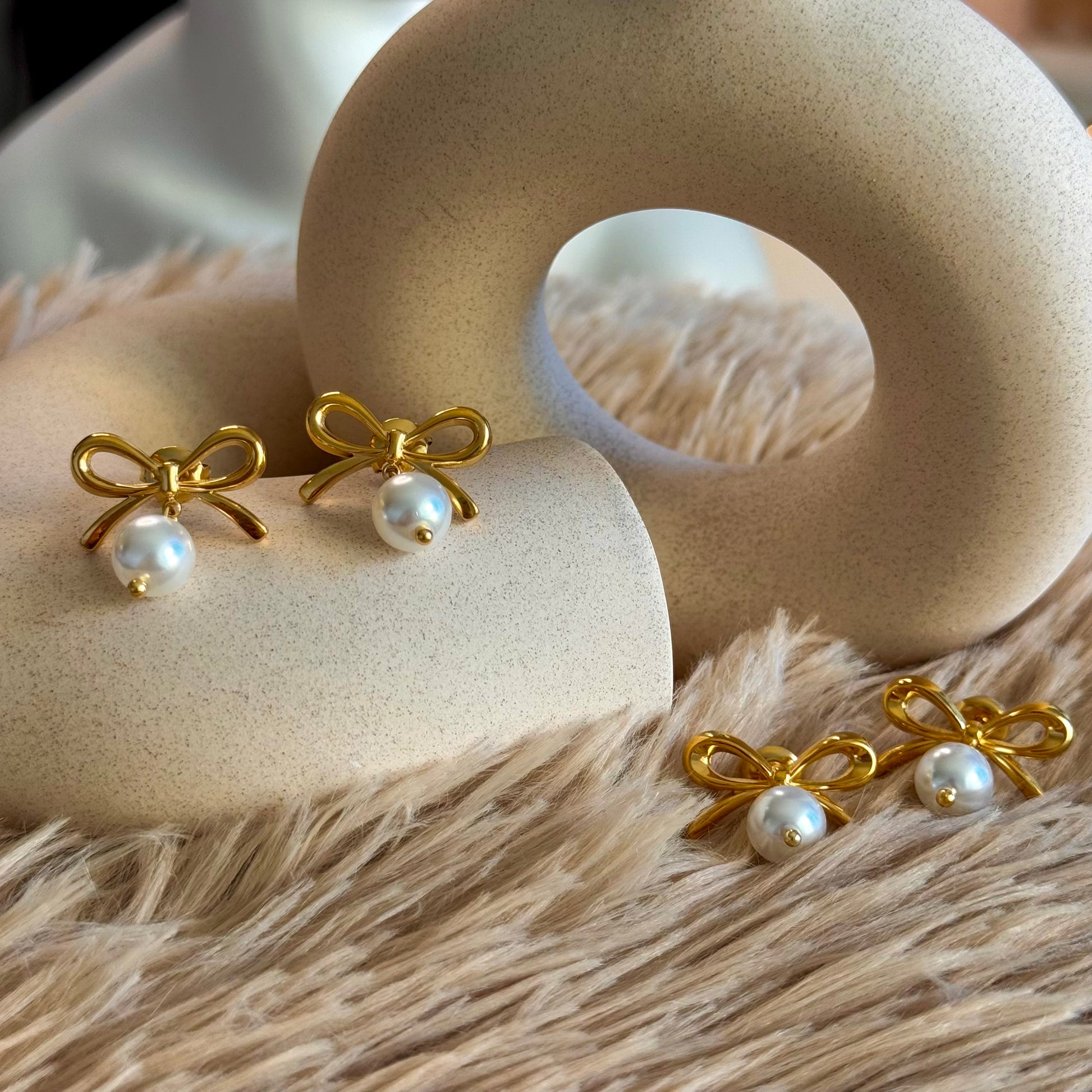 Elevate your style with this exquisite ribbon pearl. Made with 18k gold plated crafted for timeless elegance. Waterproof, non-tarnish, and hypoallergenic, it boasts enduring brilliance and exceptional comfort, making it the perfect statement of luxury and sophistication.